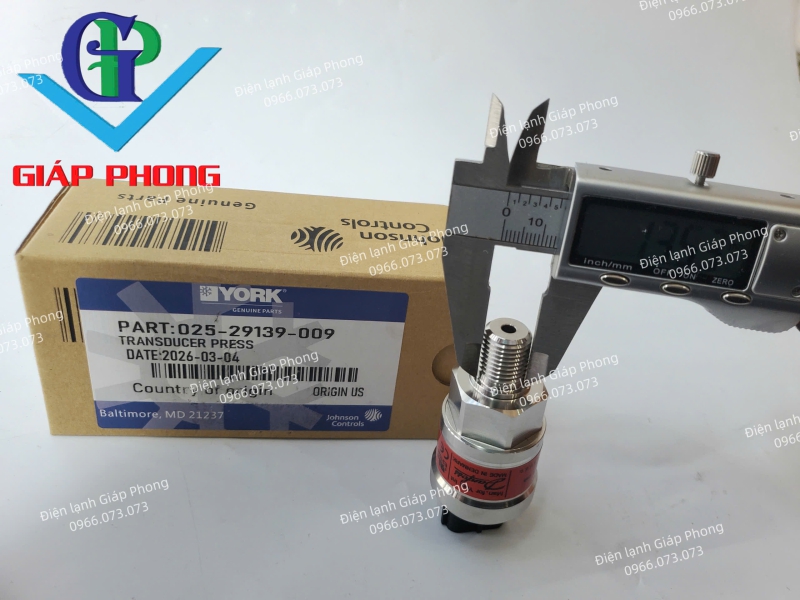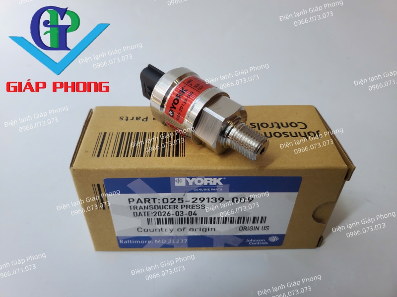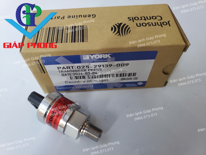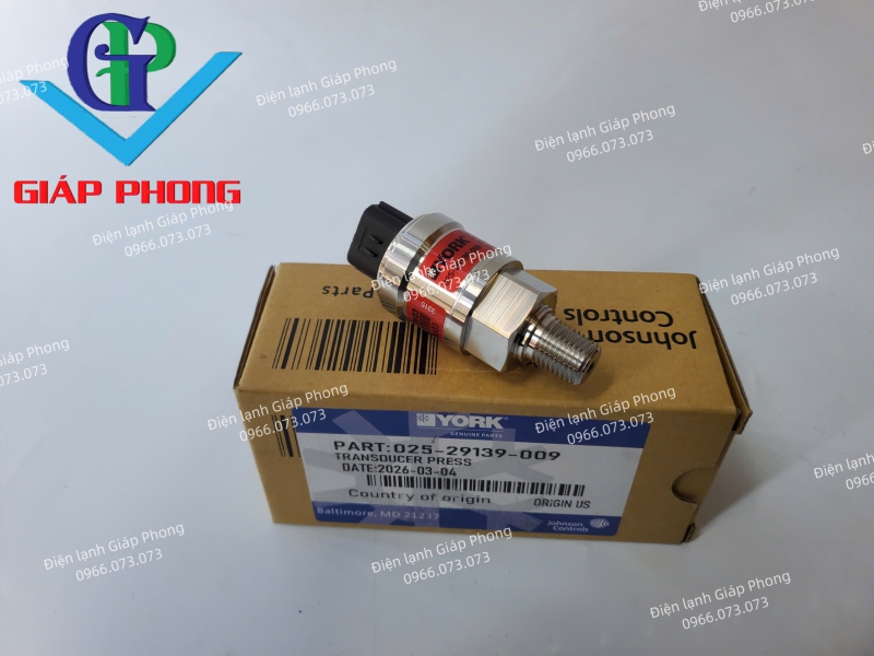 Cảm biến áp suất YORK 025-29139-009  là linh kiện cảm biến đầu vào cốt yếu, đóng vai trò giám sát trực tiếp áp suất môi chất lạnh phía cao áp để gửi tín hiệu về bộ điều khiển trung tâm. Sản phẩm được sản xuất chính hãng tại Mỹ (Origin US) theo tiêu chuẩn kỹ thuật khắt khe của tập đoàn Johnson Controls.